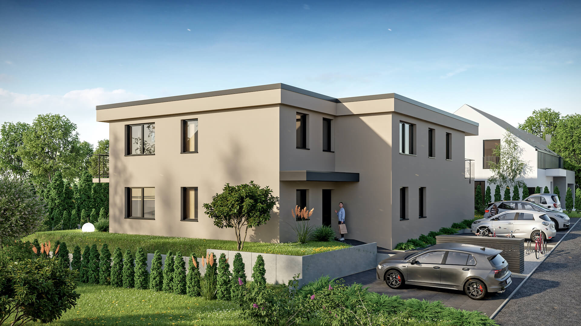 Hochwertige 2,5-Zimmer-Neubauwohnung im Erdgeschoss in KfW 40 QNG Bauweise in Schramberg-Sulgen. Sonniger Wohn-/Essbereich mit Zugang zur Südterrasse, moderne Badausstattung, Fußbodenheizung, Kellerraum und optionalem Stellplatz – ideal zum Wohnen oder Vermieten.
